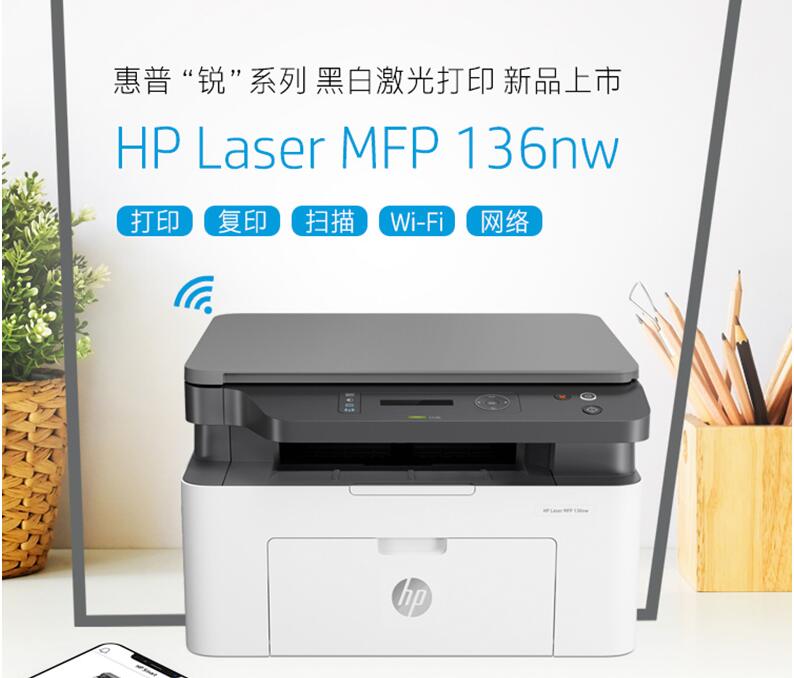 HP惠普M136w黑白激光打印機掃描復(fù)印一體機